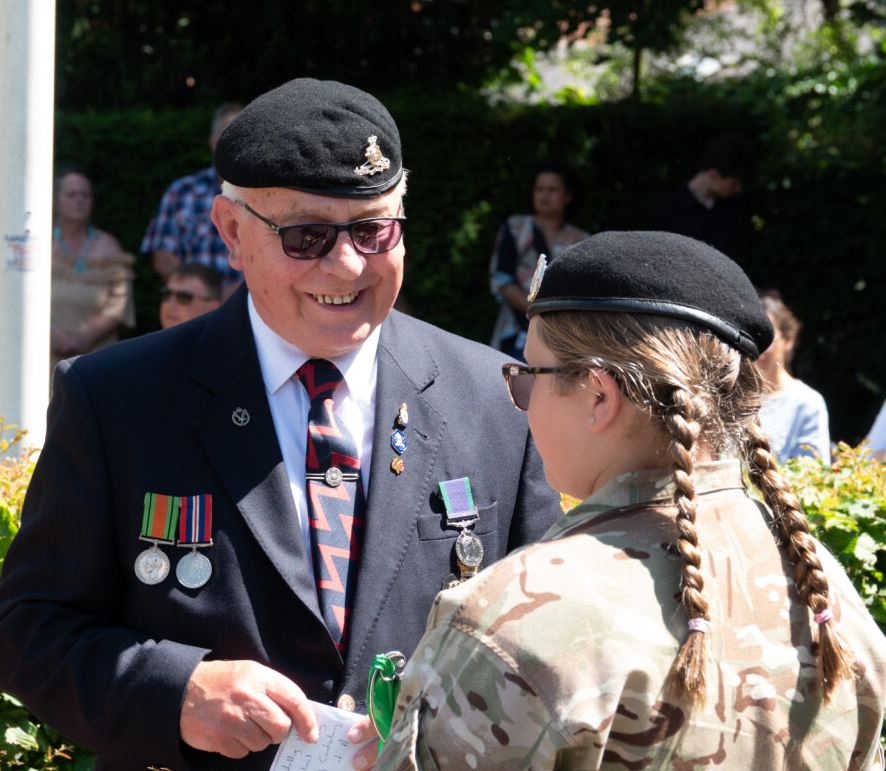 Mr Ian Kelly KC, a member of the Royal Newfoundland Regiment Advisory Council, flew from Newfoundland to join the service which was held at the memorial on Old Alfred lawn. Mr Kelly spoke movingly about his father’s service as Warrant Sergeant of D Battery located on Romney Marsh and presented each cadet with a Forget-me-not badge, the special symbol of remembrance in Newfoundland.